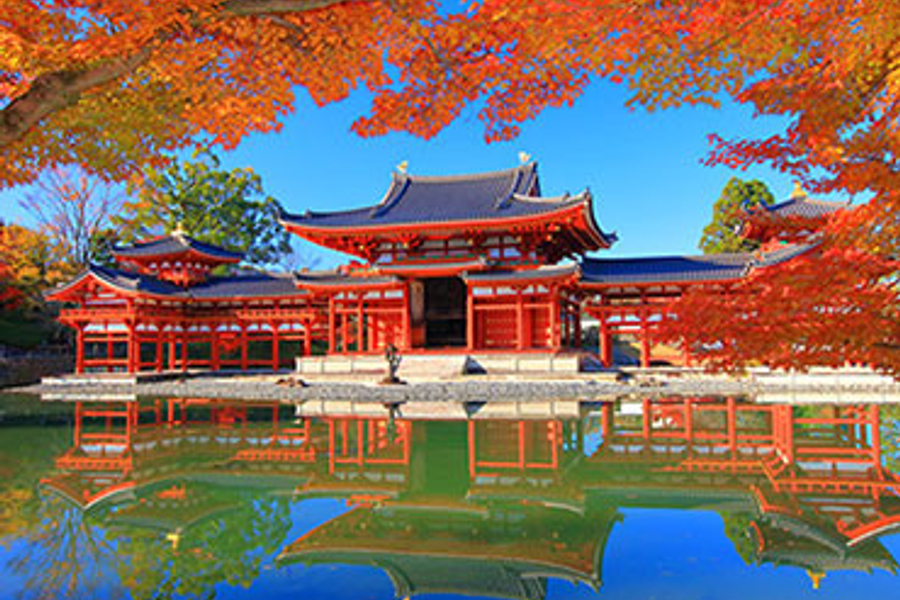 位於日本京都府宇治市,是原平安時代藤原賴通所建造的別墅。據信是古代日本人對西方極樂世界的極致具體實現,院內以阿字池為中心配置的庭園,為平安時代典型的「淨土庭園」。在西元1994年以「古都京都的文化財」的一部分被聯合國教科文組織指定為『世界文化遺產』, 平等院表參道:宇治川畔的平等院表參道,被日本環境省列為「日本100大香氣街道之」,表參道上遍布著在室町時代就開始製作和販售宇治茶的老鋪,所有宇治茶相關產品和伴手禮,如抹茶點心、冰品、甜點蛋糕等都可以在這裡找到,其中還有米其林推薦的美食甜點一定要來品嘗。【宇治體驗茶之趣-對鳳庵(茶道體驗)】
