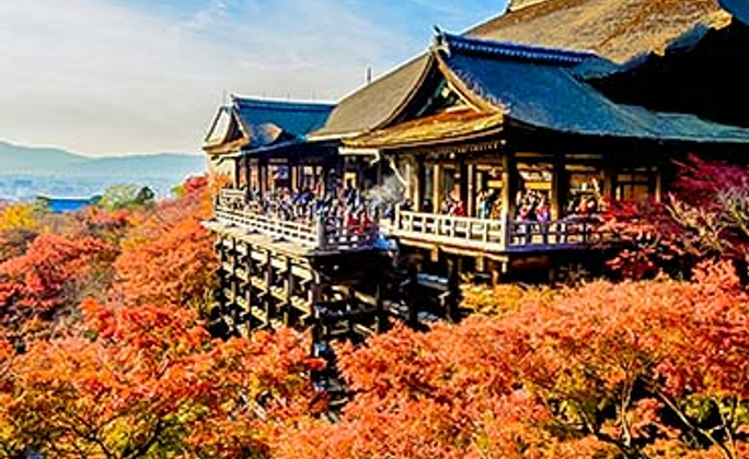 第 2 天京都紅葉之美:雅緻脫俗佛堂建築與紅葉相映成輝-「禪林寺 (永觀堂) →秋天染成深紅色美景-「哲學之道」→京都人的廚房-錦市場→觀賞楓紅舞台與三重塔同框絕景-「清水寺」→高瀨川二條苑美食饗宴