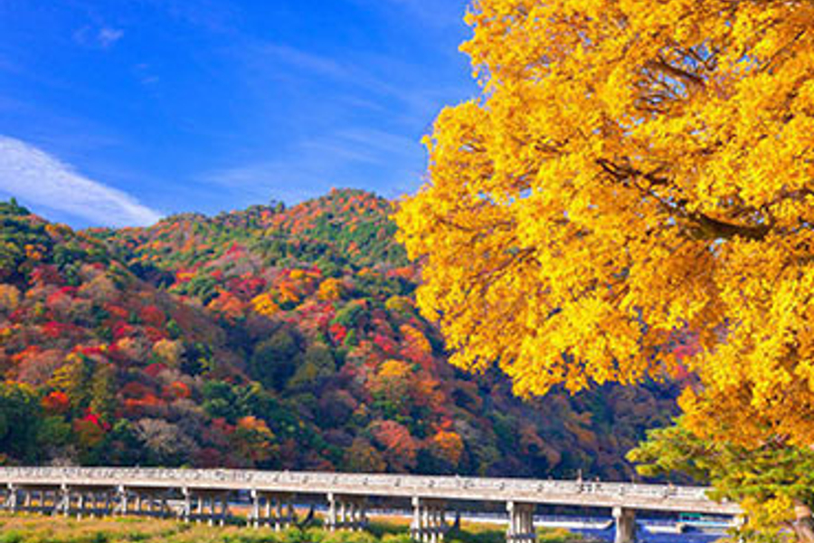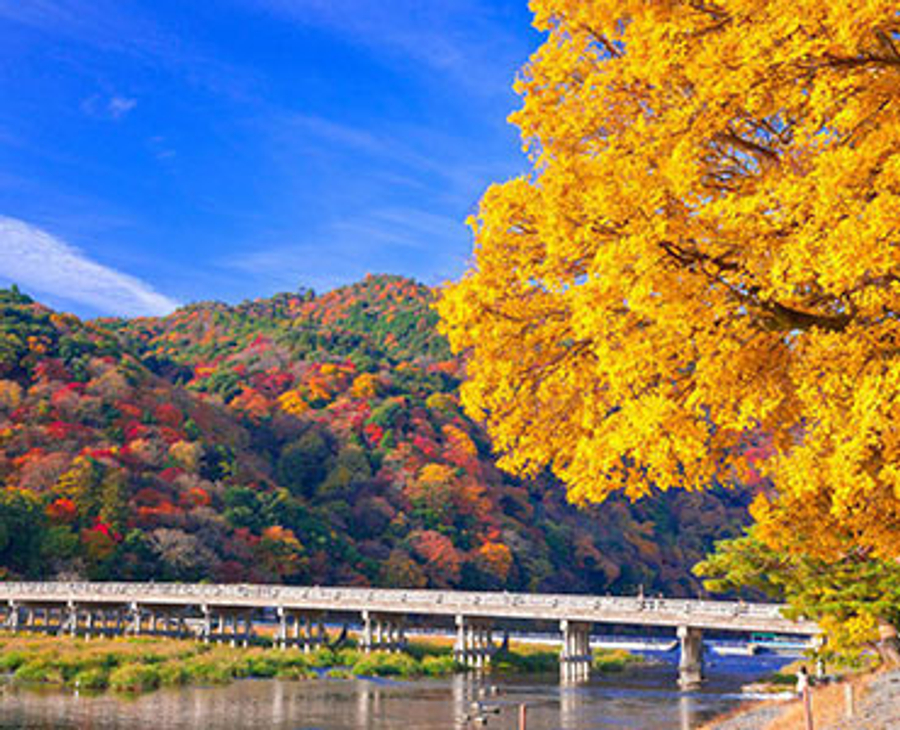 第 3 天欣賞漫山紅葉的絕佳觀景點-嵐山渡月橋→楓情翩翩嵐山屋形船(船上京風料理)→參道上堆滿繽紛楓紅落葉-毘沙門堂門跡→免稅店→黃金銀杏御堂筋大道(預計紅葉:11月下旬~12月上旬)→晚間自由前往心齋橋/戎橋商店街~道頓堀