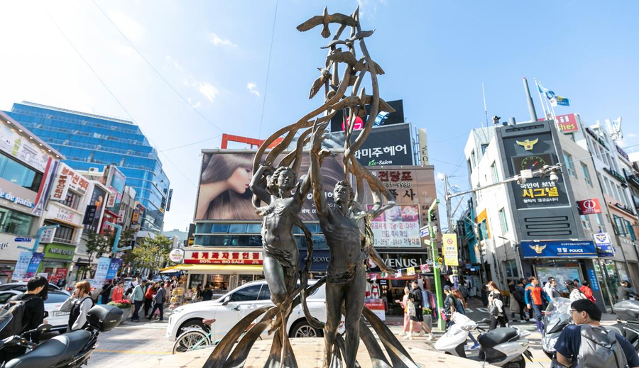 以介紹各種題材的全世界電影文化,挖掘新人,重新評價被遺忘的作品和作家為宗旨的《釜山國際電影節》,每年9月至11月在此舉行。街道上可發現各國明星的銅盤手印及簽名,我國的名導演侯孝賢,也在此留下了光榮的手印【光復洞時裝街(國際市場)】