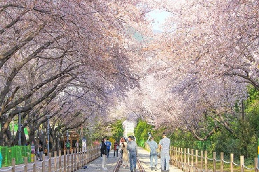 已停用的火車站,現開放給遊人,只是偶爾會有備用火車經過。路軌兩旁種滿了櫻花樹,景緻優美,是不少韓劇的取景處,亦是戀人們及家庭的消閒好去處。【西面鬧區】