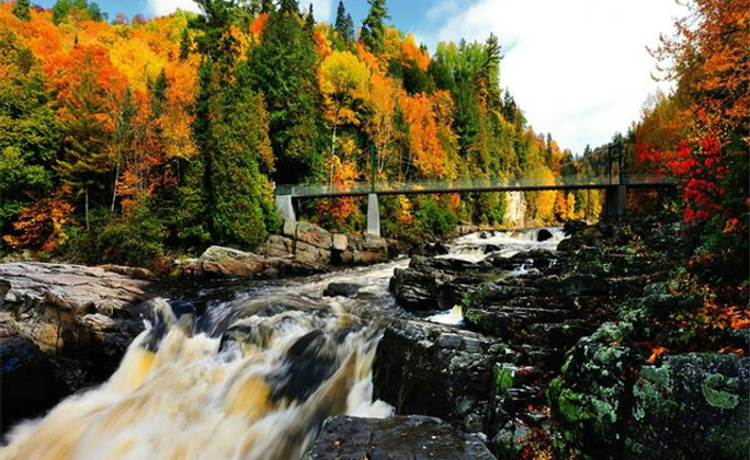 加拿大魁北克市以東約40公里的夏洛瓦河岸,有一處景色秀麗、環境優美之地,那就是著名的聖安妮峽谷。每到賞楓季節,滿山的楓紅甚是迷人,又被人們譽為魁北克的「楓」景之最。峽谷中幾座橫空而架的鎖橋,不僅可以滿足你探險的好奇心,又可身臨其境的領略沿途山間飛瀑的壯觀。