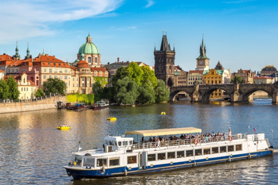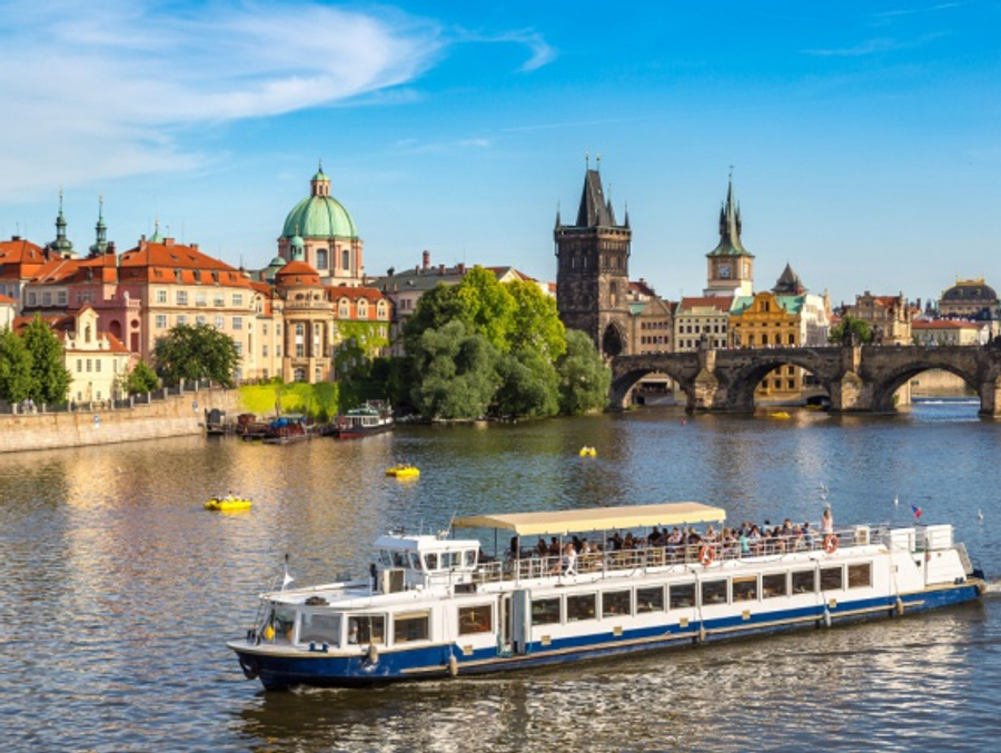 宛如藍色絲帶的伏爾他瓦河.輕聲流過查理士橋,倒影藍天白雲的景緻,從波光粼粼的河水上,欣賞布拉格帶點童話風格的瑰麗,以及河岸城堡建築的萬種風情!
