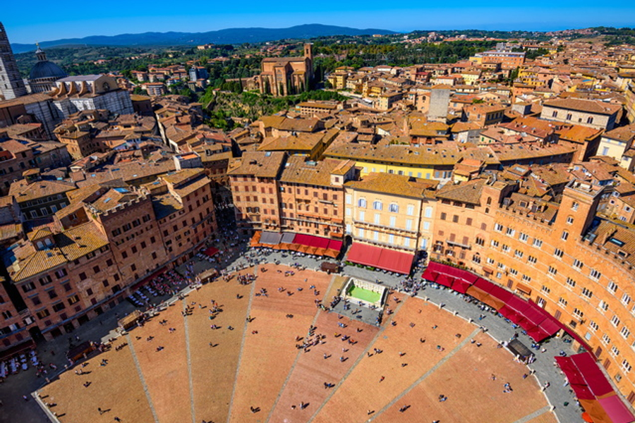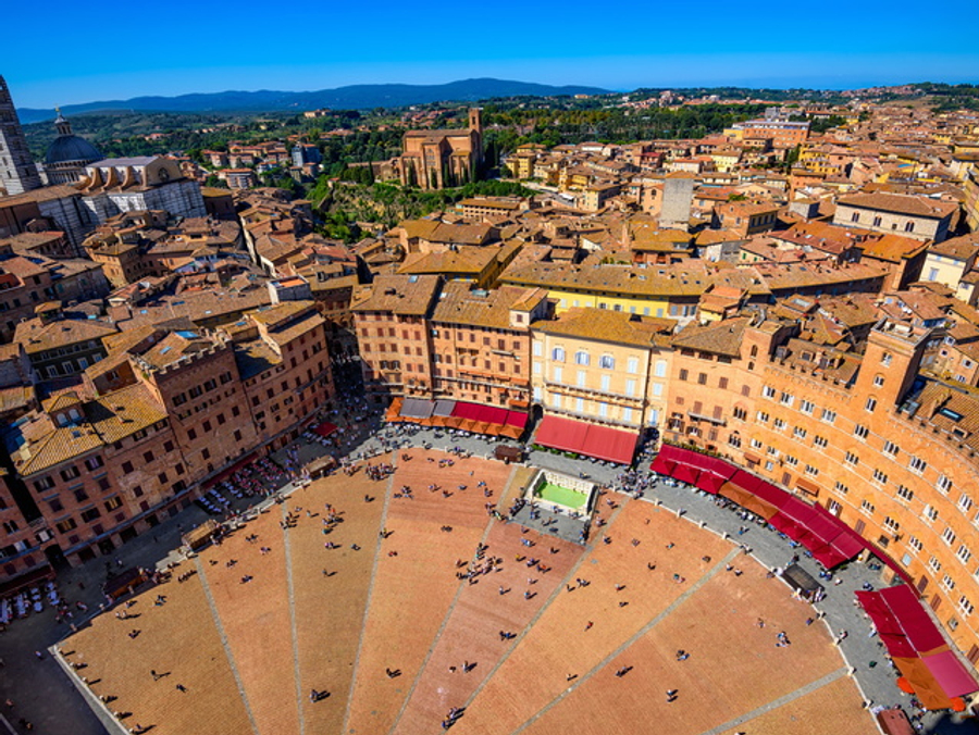有著最美山城廣場的西恩納,是座非常古老的城市,紅磚色的建築座落在這片遼闊的綠色樹林之間,頗有童話故事的場景。