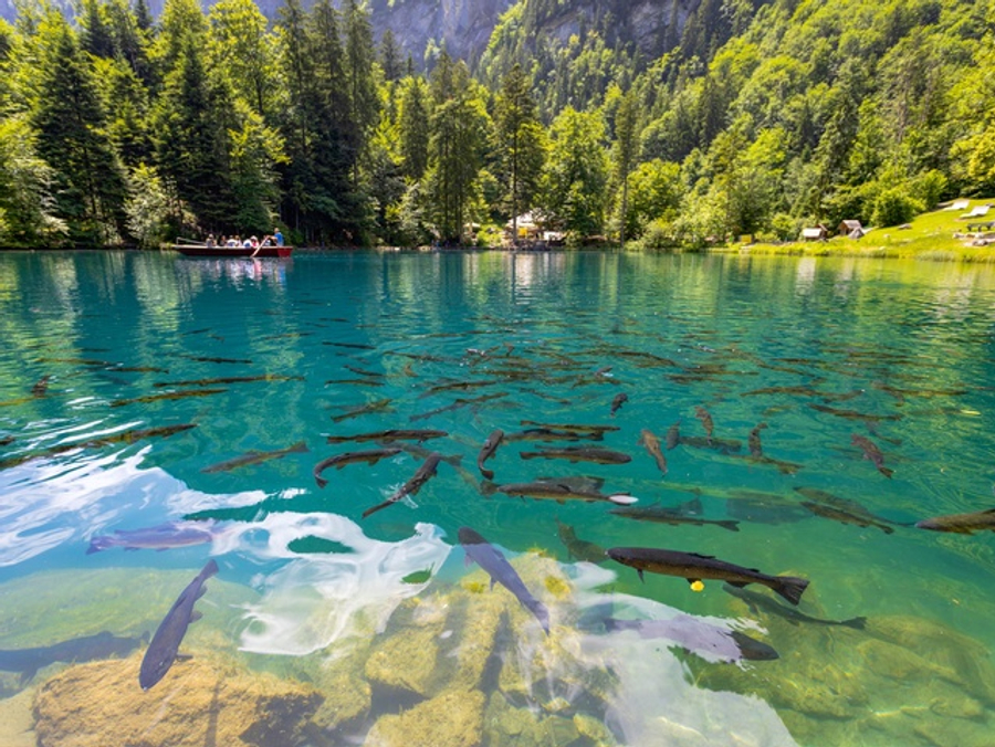 是瑞士伯恩高地地區的一座迷人山湖,靠近坎德格倫德(Kandergrund)。藍湖因其晶瑩剔透的藍色湖水聞名,是當地居民和遊客的熱門景點,周圍環繞著茂密的森林和壯麗的山脈,宛如置身於魔幻世界,到瑞士旅遊必須到這個秘境一探究竟!
