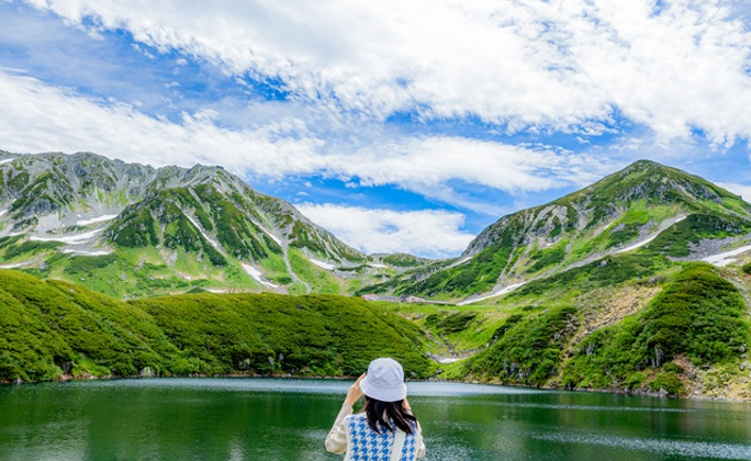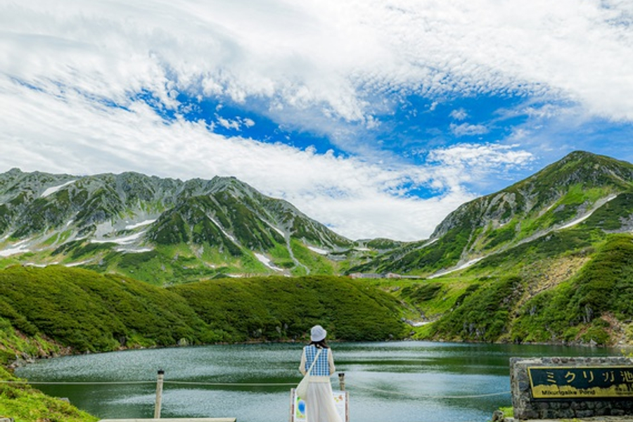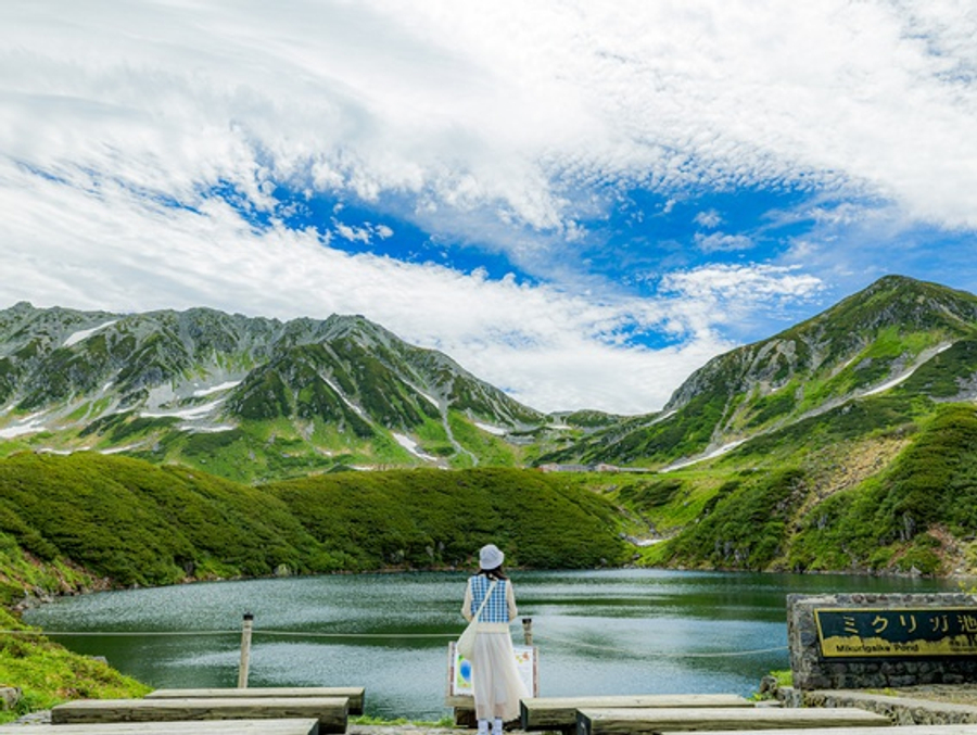 御庫裏池(みくりが池)是藏身於富山縣立山黑部阿爾卑斯山脈中的絕美火山湖,海拔2,405公尺,被群山環繞,如藍寶石般閃耀。湖水清澈如鏡,四季風景倒映其中,美得令人屏息。春有殘雪、夏賞高山花、秋觀紅葉,宛如走進一幅會變色的山水畫。傳說這裡是神明沐浴的地方,難怪湖邊總瀰漫著一種靜謐神聖的氣息。從室堂站出發,只需輕鬆步行10分鐘,就能抵達這片藏在雲端的仙境。不需登山經驗,也能輕鬆親近壯麗自然,快來讓心靈沉浸在這片夢幻高原吧!