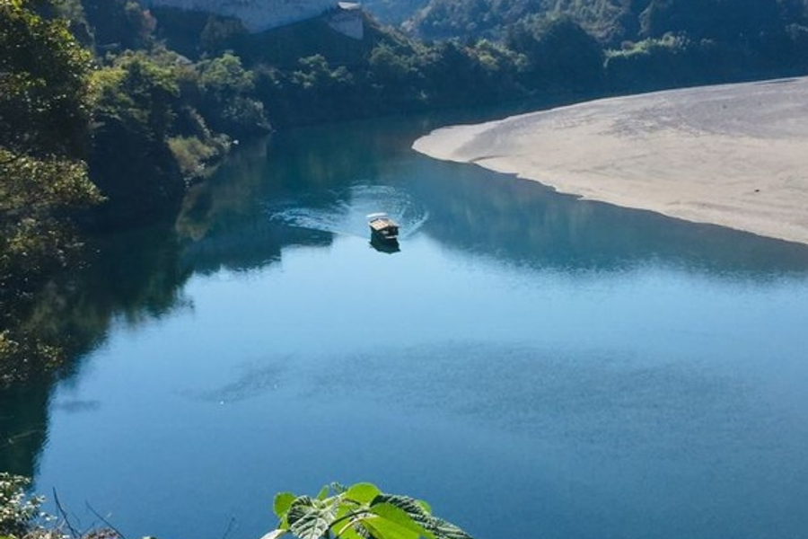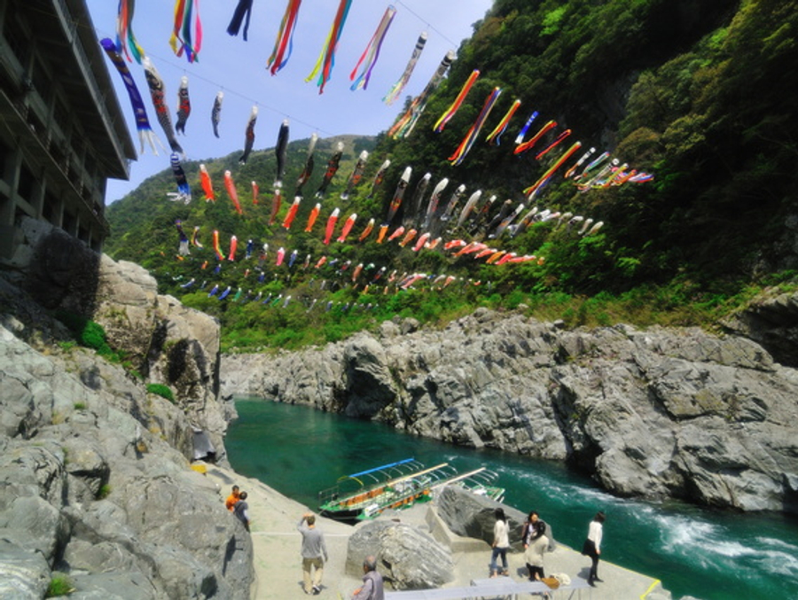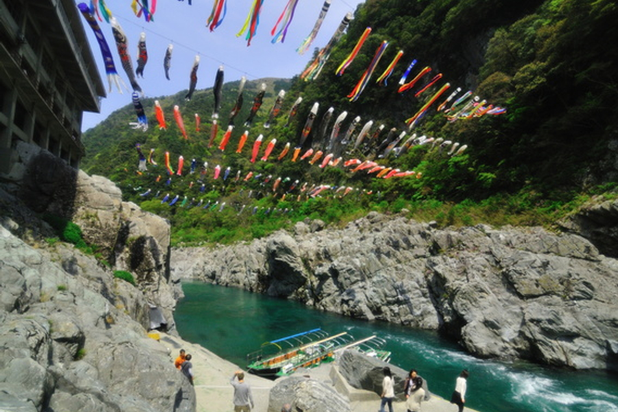 搭乘遊覽船遊覽吉野川,可一面在溪谷中滑行前進,一面欣賞大自然手工打造的壯觀景色,近距離觀賞聳立在船兩側,宛如大理石雕刻般的結晶片岩。