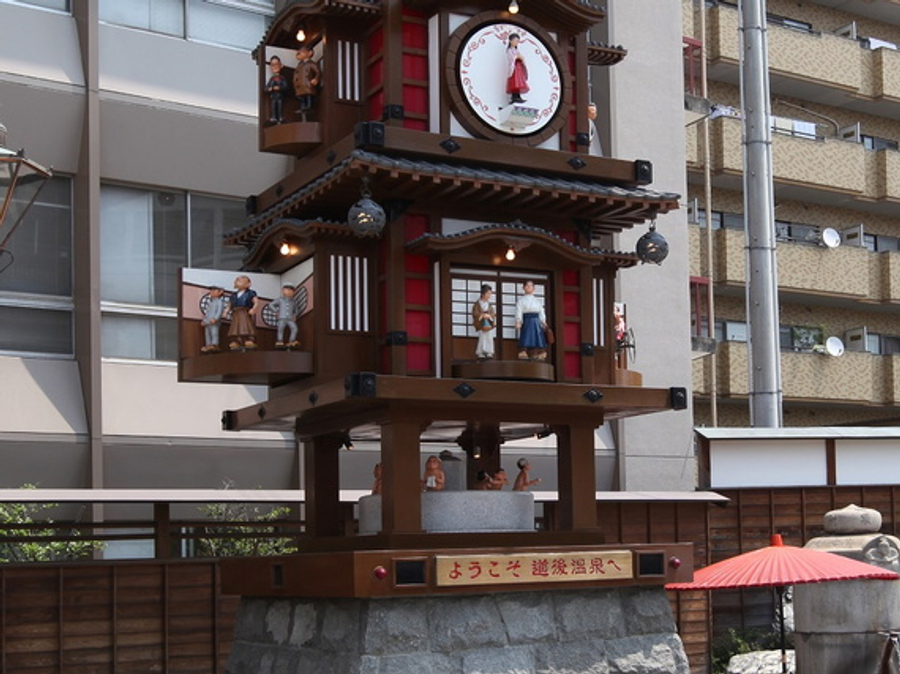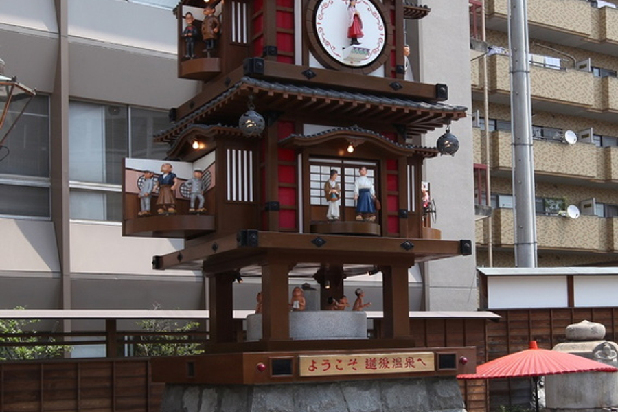 由早上8:00到晚上22:00,每小時整點(週末、日本國定假日、3月、4月、8月、11月、元旦過年、黃金週是每隔30分鐘)播放輕快的旋律,隨著音樂的響起,夏目漱石在其著作《少爺》裏的人物如少爺、瑪丹那、紅衫等20個機關人偶會依序出現,配合悅耳旋律精采演出,是遊客最喜愛拍照留念的地點。