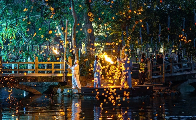 指定爲文化遺產的「咸安落火遊戲」,又稱朝鮮版的煙火秀。是一項留傳百年的傳統慶典活動,通常在每年的夏季舉行,這個活動結合了文化、宗教和社群的慶祝,吸引了眾多遊客和當地居民的參與。將製作好的引線綁在繩索上,點燃後產生的火花如同飄落的花瓣,象徵著美好祝願,這項活動源於古時候文儒雅士的專屬遊戲,獨具特色,令人難以忘懷。照片出處:咸安郡提供