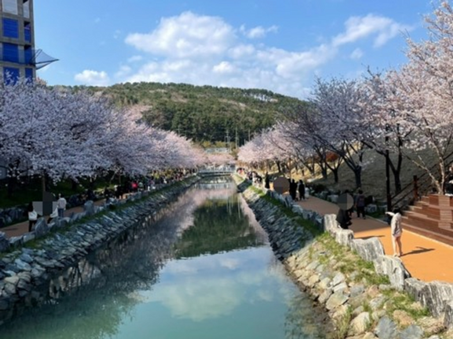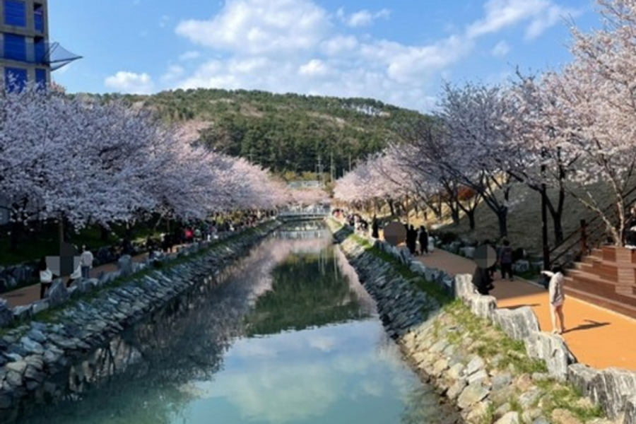 已廢止的『慶和車站』,路軌兩旁種滿了櫻花樹,景緻優美,是不少韓劇的取景處,亦是戀人們及家庭的悠閒好去處。一到4月櫻花盛開季節,鎮海市就成爲一片粉紅色的花海。街道上的櫻花如天女散花一樣飄落