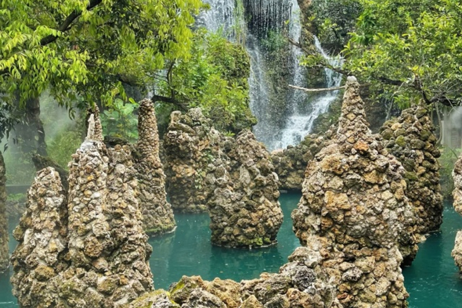 清萊藍廟(Wat Rong Suea Ten)是一座以藍色為主調的佛教寺廟,融合傳統與現代藝術風格。主殿內有一尊純白佛像,搭配精美壁畫,營造寧靜氛圍。入口由巨大神話生物雕像守護,設計獨特。藍廟由白廟弟子 Phuttha Kabkaew 設計,於 2016 年完工,成為清萊新興景點。與白廟相比,藍廟更顯神秘與寧靜,適合喜愛藝術與文化的旅人。