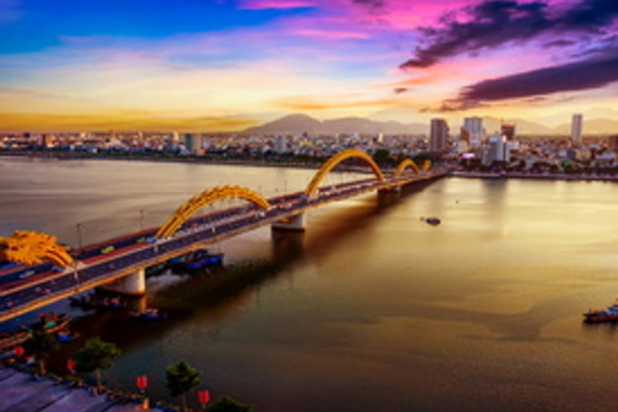 為了紀念峴港解放38周年,於2009年開始,歷經四年建成,坐落于市區的韓江之上,它不僅是世界上最大鋼鐵結構的龍形大橋,還覆蓋了2500個LED燈,每逢重要節慶的時候,會從龍頭噴出熊熊烈火,除了有代表民族獨立的意涵外,獨特的建築工藝與造型,使它曾登上CNN報導,稱其為峴港城市的新成功象徵。