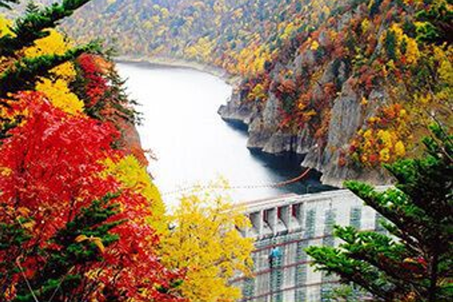 從定山溪溫泉沿著豐平川溯流而上約7km的拱形水壩。原生林和柱狀節理的溪谷環繞,是著名的賞楓景點,在水壩上的人行步道可近距離眺望湖面,水庫和紅葉的對比得以欣賞秋天美麗的溪谷紅葉景色。