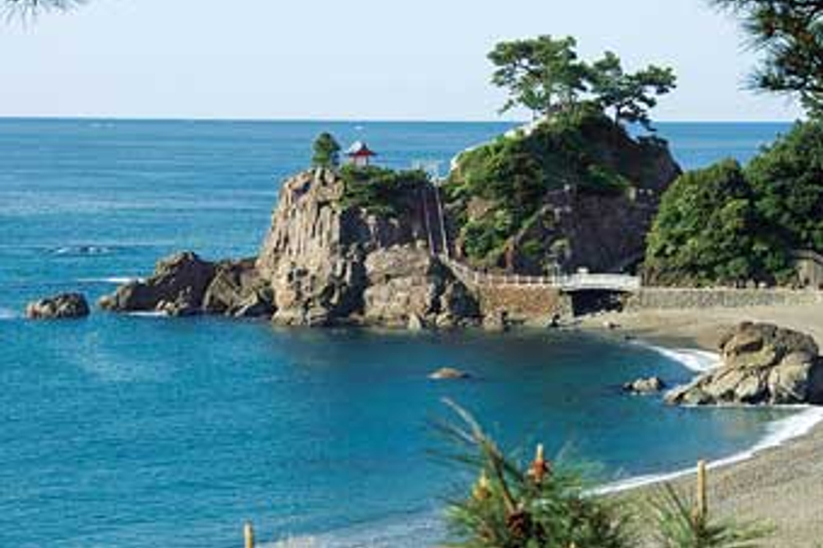 【桂濱】位於龍頭岬和龍王岬間以賞月勝地而聞名之 桂濱 ,綠色的松林,色彩繽紛小石,碧藍的太平洋,調和成庭院風格,為高知代表之觀光名所。附近一帶有幕府末期的著名人物板本龍馬像、在此可以欣賞到壯觀的太平洋海景,吸引各地遊客到訪。