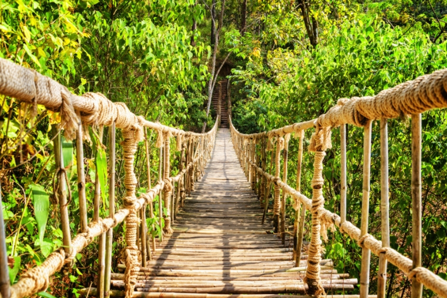 【祖谷葛藤橋】日本國家和德島縣的重要有形民俗文化財產,又名【蔓藤橋】橋長45公尺、寬2公尺、高15公尺,是由葛籐編造而成的。葛藤橋的由來,據說是巡行至祖谷的弘法大師為了解決此處村民煩惱而製作的橋,另有一說是逃至此處的平家族人,為了能快速地切斷藤蔓擺脫追兵而製作。為了安全上的考量每三年將會更換一次藤葛以供遊客前遊玩觀賞,步行時的晃動再加上橋下清晰可見的溪流令人震撼不已。初夏時節的新綠或是深秋時的紅葉更是添其加剛中帶柔的壯麗。