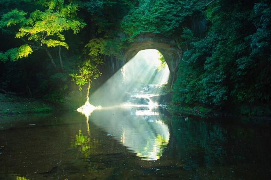 【濃溝瀑布】龜山湖位於千葉縣的君津市 清水溪公園 。光的角度從上方洞穴照射進來形成"秘境"的感覺,隨著季節和天氣變化,會呈現不同風貌!回程的木棧步道周圍種植許多楓葉,夏季欣賞成群飛舞的螢火蟲,秋季享楓葉,冬季雪景。