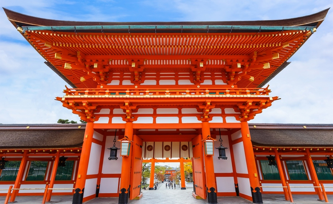 金閣寺是足利義滿於1397年所建造的山上別墅,1950年時一名年輕僧侶因愛上金閣寺的美而放火,於1955年重建,到1987年日本政府又斥資7億日圓,耗用20萬張金箔紙貼在其上。