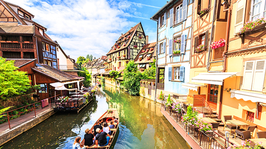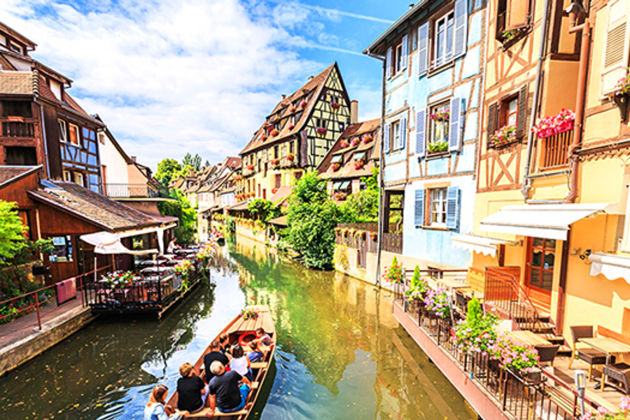 Hilton Strasbourg或B&B HOTEL Strasbourg Nord Schiltigheim Lac或Hôtel Mercure Strasbourg Aéroport或同級 第 8 天 史特拉斯堡 > 最美鮮花小鎮埃吉森Eguisheim > 科瑪Colmar > 法蘭克福機場區飯店 最美鮮花小鎮埃吉森Eguisheim 建於1257年的中世紀小鎮,擁有法國Villie Fleurie最高榮譽4朵花的鮮花小鎮Eguisheim埃吉桑,是法國東部上萊茵省的市鎮,屬於科爾馬-里博維萊區溫策奈姆縣,屬於科爾馬區萬特澤南縣(Wintzenheim),科爾馬西南約7公里處,是東法亞爾薩斯(Alsace)區著名的葡萄園區,被譽為「阿爾薩斯葡萄酒搖籃」。建於中世紀,鎮內建築仍保留濃厚的中世紀色彩。彩色房子排在窄窄的街巷兩邊,因為家家戶戶都衝種花養草,走在街道上,更是如同走進童話故事世界中一般。由於搭車不易故相對遊客稀少許多,可以悠閒自在的走在中世紀同心圓小徑中,欣賞德法邊境融合的夢幻半木構造建築群,這裡也是教宗利奧九世於1002年的誕生地,也是法國東部白葡萄酒的產地。 科瑪Colmar 有《小威尼斯》之稱的科瑪,舊時漁人生活的遺跡,佈滿了各種不同顏色的花草與半木造屋,鵝黃、水藍、草綠各色爭艷,在此漫步,有如置身仙境。另外創作紐約自由女神像的巴多第,就是道地的科瑪人。 ■【下車拍照】最美鮮花小鎮埃吉森、科瑪 ■【參考行車距離】史特拉斯堡- 84KM-最美鮮花小鎮埃吉森-7公里-科瑪- 286KM-法蘭克福機場區飯店