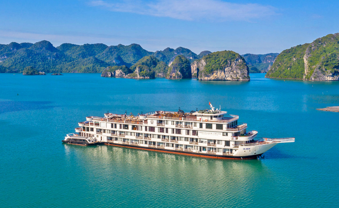 【下船參觀】大使號日遊船、驚訝洞、英雄島。 【車程時間參考】下龍灣日遊船巡航約6小時