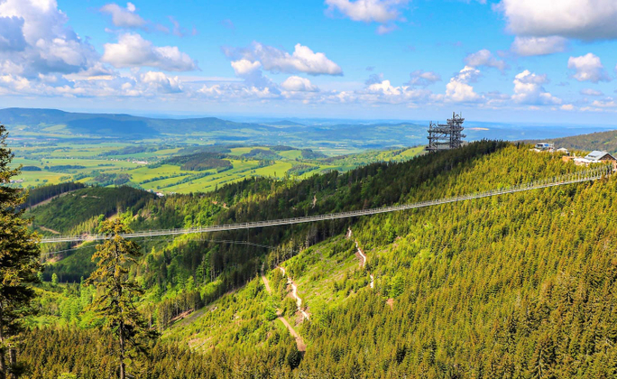 4★CLARION CONGRESS HOTEL或NH COLLECTION CONGRESS或CITY INN或同級 第 3 天 歐洛慕奇-【捷克之最】天空之橋SKY BRIDGE 721+天空步道SKY WALK-飯店 今日帶您體驗位在捷克與波蘭邊境的克拉利采雪山山區,2022年5月13日最新亮相,全長為721公尺,打破2021年在葡萄牙完工的Arouca 516吊橋紀錄,是世界上最長的一座吊橋之一,花費近兩年時間打造,由6條主要支撐索與60根直徑不同的風繩做為支撐,全長達721公尺、海拔1,116公尺、離地面最高95公尺(約27層樓高),寬度僅約1.2公尺,漫步在雲端間的天空之橋~嗚~我的心跳加快…..腎上腺素High ~high into the sky! 漫步於海拔1,116公尺上的天空步道喔!風景如畫的摩拉瓦河山谷以及和山脈的壯麗景色,建築師使用了380噸鋼材來建造,步道總長710公尺、總高度55公尺創造一種新的體驗,讓人們意識到自己在大自然懷抱中是如此渺小,接續前往捷克首都、百塔之城-布拉格。 ■【門票安排】纜車、天空之橋、天空步道。 ■【參考行車時間距離】歐洛慕奇92KM:2H天空之橋89KM:2H飯店。