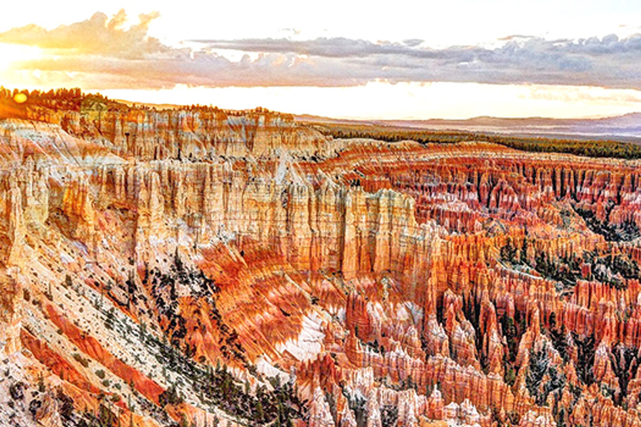 Holiday Inn Express或SpringHill Suites by Marriott或Hampton Inn或同級 第 7 天 西達小鎮 >錫安國家公園 >紅峽谷 >布萊斯峽谷國家公園 錫安國家公園 被稱為「上帝祈福過的土地」,公園的岩石,高大壯碩,穩穩地挺立在天地之間,而維琴河則悠閒地穿梭其中。您可欣賞到景觀如畫的維琴眾塔,接著前往園區內的錫安客棧。隨後在途中您可看到高懸於山壁之中的大拱門,途經棋盤山,而棋盤山上的方格,似乎記載著天和地亙古以來對奕的棋局,此公園令人屏息的氣勢,遊人至此不由得驚嘆!「剛毅中有溫柔,婉約中有堅定」彷彿是錫安國家公園的最佳註解。 紅峽谷 美麗的紅峽谷(Red Canyon)就在公路兩側,奇形怪狀的紅色岩石陳列路旁,有的像獅子,有的像城堡,有的像女王頭,任您想像。紅峽谷離布萊斯峽谷已不遠,許多遊客也都在此逗留拍照,算是布萊斯峽谷行程的美味前菜。 布萊斯峽谷國家公園 成立於1928年的布萊斯峽谷國家公園,位於南猶他州,以其瑰麗色彩和獨具一格的岩柱聞名,綜合了風、河水、融冰的特殊侵蝕和湖床沈積岩組合而成,一眼望去有的像中國秦朝的兵馬俑,有的又像童話中的城堡、仙女、棋盤等,因而被讚譽為《天然石俑的殿堂》,加上隨著陽光的移動,瞬息萬變出橙、棕、紅、灰等色彩,不論何時前去都滿是驚嘆。 安排前往日出點、日落點、布萊斯點,看著深深淺淺的灰色、橙色、棕色點綴著滿山滿谷或密或疏聳立的柱岩,實在美極了!起初感覺像是一排排靜靜聆聽歌劇的觀眾,而當夕陽餘暉發揮到極致,襯托出鮮麗的紅色岩石,一霎時,這些原本屏氣凝神的觀眾,彷彿就要躍起鼓掌且聲震雲霄。 布萊斯峽谷國家公園部分景點如遇天候因素而導致關閉時,敬請見諒!