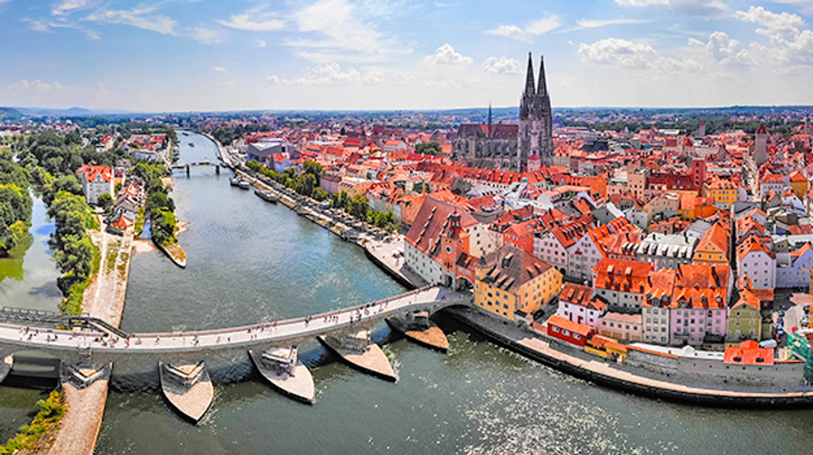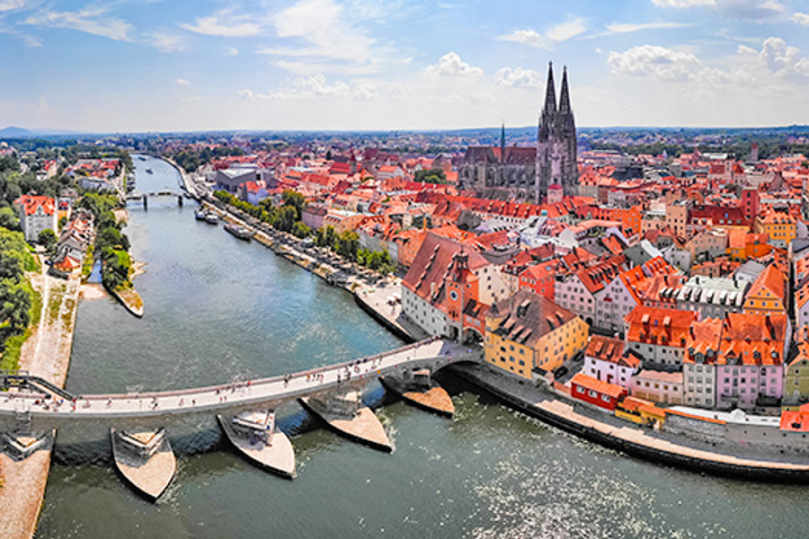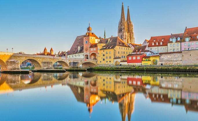 今日步⾏遊覽,您將看到羅馬帝國「哲學家皇帝」馬可·奧理略建城樹⽴的羅馬式老城牆。⾛過老市政廳,讚嘆雷根斯堡古老⽯橋這座中世紀⼯程奇蹟。參觀德國最古⽼餐廳,隨後在聖彼得⼤教堂,欣賞教堂裡奪目的全彩繪玻璃窗。