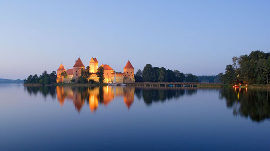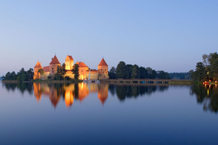 第 17 天 維爾紐斯-特拉凱-維爾紐斯 *連泊3晚 特拉凱水中古堡 位於維爾紐斯市郊,立陶宛古都和榮耀史蹟-特拉凱,1991年立陶宛政府把特拉凱鎮及周邊地區80平方公里土地劃為歷史國家公園,也是立陶宛最小的國家公園,2003年列入世界遺產。特拉凱有多座湖泊在冰河時期已經形成,不過讓這裡聲名大噪的則是在歐洲罕見被湖泊所包圍的特拉凱水中古堡,也是東歐唯一的一座水上城堡。城堡的歷史可追溯至13、14世紀,立陶宛大公─蓋迪米納斯(Gediminas)在此建城以阻擋條頓十字軍的宗教迫害,天然的屏障與堅固的城堡易守難攻。它的美在於城堡與周遭自然環境的和諧存在,森林與湖泊和古城交織而成一幅獨特的風景畫,如詩般地美。 ■【遊船巡禮】特拉凱遊船 ■【入內參觀】特拉凱水中古堡 ■【行車距離】維爾紐斯50KM特拉凱50KM維爾紐斯