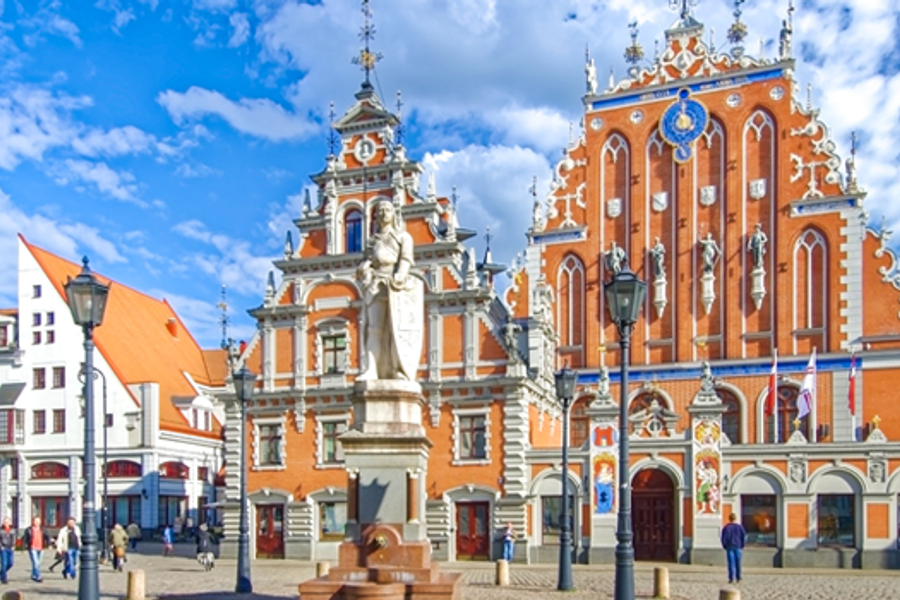Radisson Blu或Islande或Tallink或同級 里加 1997年登入世界遺產的舊城區,里加天際線最引人注目的即是聖彼得教堂上高達123公尺的尖塔,為巴洛克式風格,塔尖頂著重達158公斤的鍍金風向雞為城市標的。舊城廣場上有一座波羅的海地區最大的多姆主教堂,裡面的彩繪玻璃與多達6718根管子,為當時世界最大的管風琴堪稱當地最美的教堂;三兄弟屋因三幢歌德式風格的山形牆面相連而著名,年代最久的即右邊這棟約建於15世紀的民宅,中間棟於17世紀重新修建,左邊最年輕的建築直到18世紀才出現,有趣的是三棟建築的窗戶依縮減的牆面也逐漸變小,現為建築博物館所在地。另一棟逗趣的房子為貓之屋,黃色豪宅上有兩隻發怒的貓而聞名;市政廳廣場上還有一棟著名的建築物黑人頭之屋,最早建於1334年,是海外年輕單身的商人組織集會所在。 ■【遊船巡禮】里加遊船 ■【下車參觀】聖彼得教堂、多姆主教堂、三兄弟屋、貓之屋、市政廳廣場、黑人頭之屋