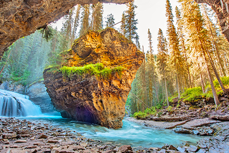Banff Caribou Lodge或anff Aspen Lodge或同級 第 14 天 班夫-強斯頓峽谷 Johnston Canyon-卡加利 Calgary 強斯頓峽谷 當秋風輕拂,整個峽谷換上金黃、橘紅與深綠交織的色彩,層林盡染,宛如走進一幅會呼吸的油畫,每一步都讓人忍不住放慢腳步細細欣賞,是秋季造訪洛磯山脈不可錯過的夢幻步道。 沿著峽谷而建的木棧道平緩好走,適合各年齡層旅人。步道一路伴隨潺潺流水,穿越峭壁與森林,陸續可抵達下瀑布與上瀑布觀景點。秋季水量穩定,瀑布自岩壁傾瀉而下,搭配滿山秋色,畫面層次分明、氣勢十足,是攝影愛好者最愛的取景地。 相較夏季熱鬧,秋天的強斯頓峽谷多了一份寧靜,空氣清新、光線柔和,非常適合健行與深度感受大自然。若幸運,還能看到野生動物在林間出沒。無論是輕鬆散步、拍照取景,或單純享受秋日山林的靜謐氛圍,強斯頓峽谷都是秋季旅遊中令人回味再三的亮點。 ■【門票安排】強斯頓峽谷