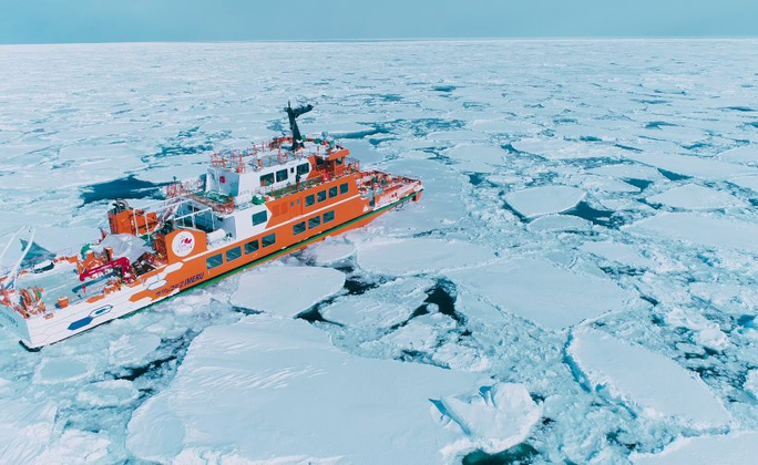 雪塊,船行進途中將冰層撞開、開道闢路、乘風破冰的壯闊氣勢,讓人感到相當奔放無拘束,有著陸上流