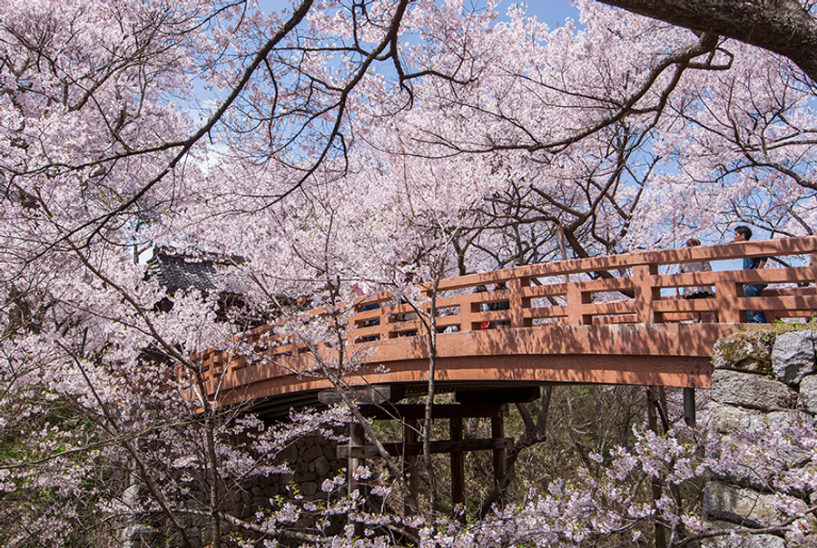 【高遠城址公園】(賞櫻預估時間4月上旬~4月中旬)原為戰國時代的城郭,江戶時代成為高遠藩的政治據點,明治維新後城池建築多數拆除,現今整備為公園,仍保留部分土塁與地形遺跡。園內種植約一千五百株的高遠小彼岸櫻,花色濃粉、花朵細小且密集,盛開時宛如粉色雲海,被譽為「天下第一櫻」,與弘前公園、吉野山並列為「日本三大櫻花名所」。