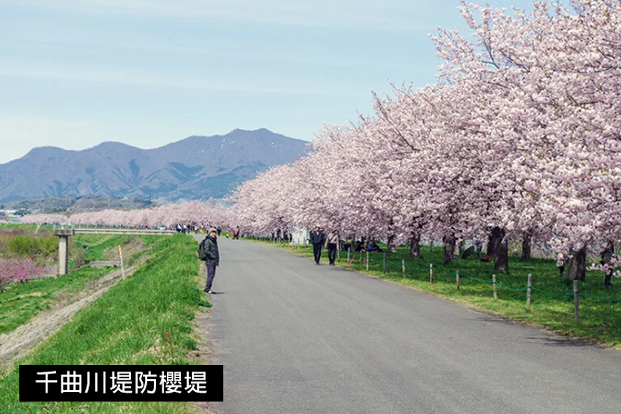 【千曲川堤櫻堤】(賞櫻預估時間4月中旬~5月上旬)櫻堤長約三公里,沿著千曲川兩岸延伸,種植大量染井吉野櫻,春天盛開時,河岸形成粉紅色櫻花大道,河面倒映櫻花與春日藍天,增添視覺美感,為攝影愛好者提供絕佳拍攝題材,景色浪漫迷人。賞櫻期間,有時會舉辦小型祭典與攤販,販售當地美食與飲品,讓遊客在賞花之餘也能品嘗在地風味。