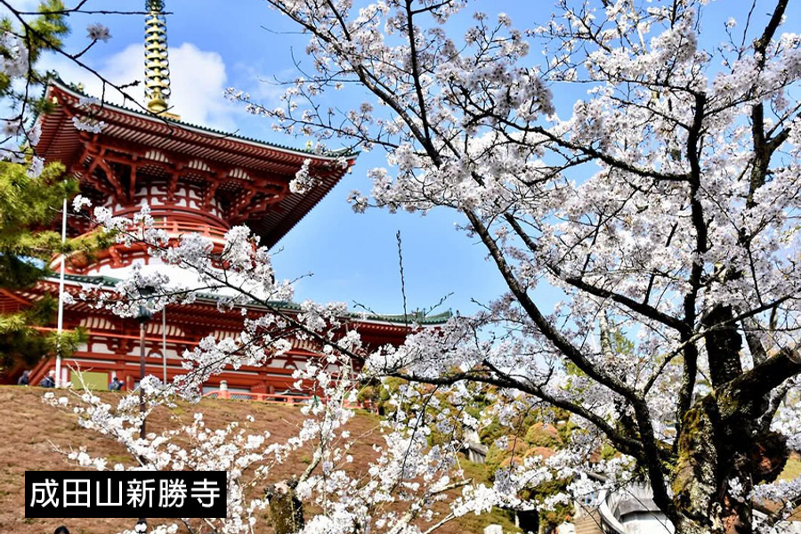 【成田山新勝寺】(賞櫻預估時間3月下旬~4月上旬)新勝寺擁有超過千年的歷史,是關東地區具代表性的佛教寺院之一,境內建築莊嚴宏偉,本堂、三重塔與各殿堂錯落其間,展現濃厚的日本傳統宗教風格。寺院內供奉不動明王,自古以來被視為祈求開運、消災解厄、交通安全與事業順利的重要信仰中心,每年吸引大量參拜者前來。