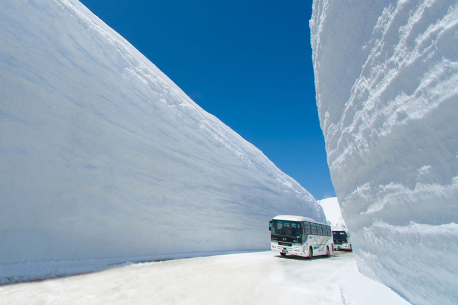 第 3 天飯店→扇澤駅→黑部峽谷水壩駅〜山路電動巴士【山路電動巴士6.1km 13分鐘】→黑部湖〜徒步0.8km →黑部平〜有軌纜車【黑部地下纜車0.8km 5分鐘】→大觀峰〜空中索道纜車【空中纜車1.7km 7分鐘】→室堂(觀賞一年一次巨無霸雪壁『4月中旬~5/30開山限定』)〜隧道無軌電車【隧道無軌電車3.7km 10分鐘】→美女平〜高原巴士【高原巴士23km 50分鐘】→立山駅〜有軌纜車【電纜車1.7km 7分鐘】→立山黑部峽谷~立山連峰→飯店(本日上下山的進出點及飯店安排將隨官方車流管制政策而有所變動,敬請理解)