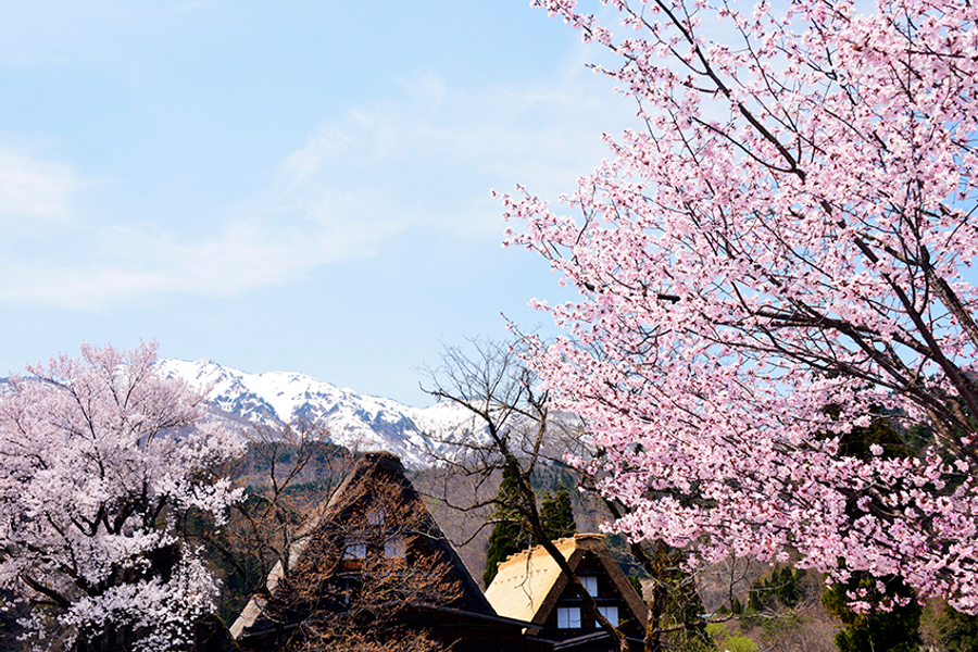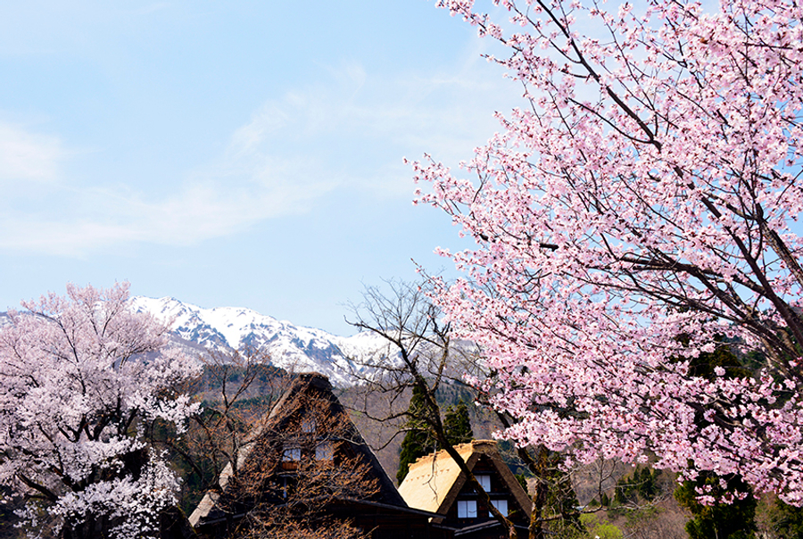 【白川鄉合掌村】地處豪雪地帶、再加上山區地形阻絕、形成地域獨特的風俗文化,至今仍完整保留為日常生活之用,其中以合掌型的茅草家屋最為著名。為防積雪而建構的急斜面的茅草屋頂,有如兩手合掌的形狀,目前尚有113棟,屋旁田地園圃交錯銜接,構成一幅濃厚懷古幽情、山間農村的田園景觀,於1995年12月聯合國文教組織登錄為世界遺產以來,世界各國的觀光客蜂擁而至。