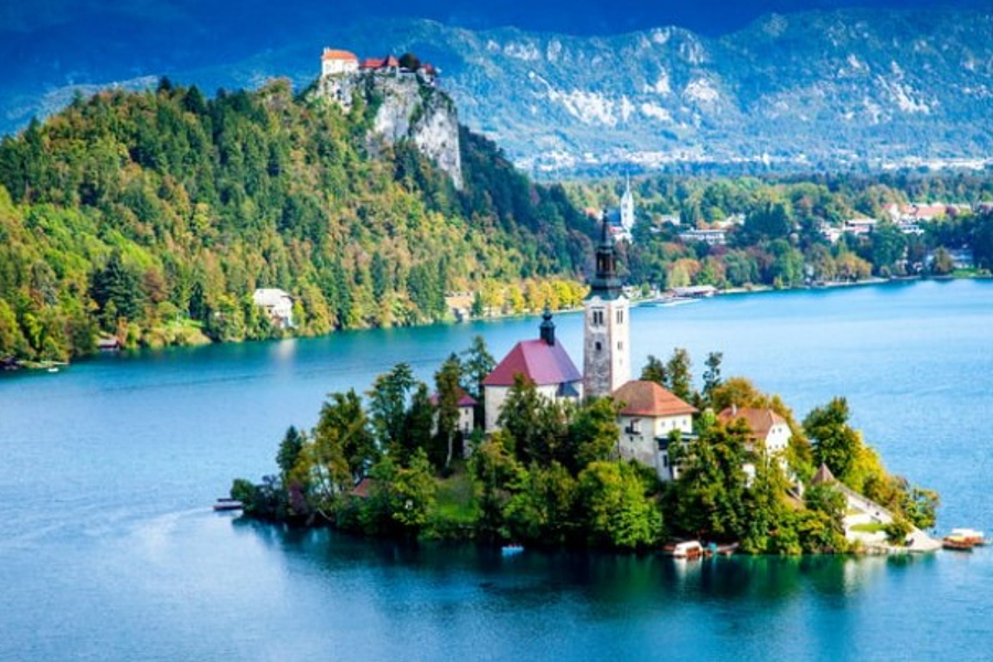 【布雷德湖區】 素有「藍湖」之稱的布雷德湖,夏季時祖母綠色的湖面,波光粼粼;冬季時特里格拉夫山頭覆蓋靄靄白雪,湖面上結成如薄紗般的冰層;秋季則彷彿印象派畫家把油彩倒入了整座國家公園,蔚藍的湖水四周被群山所環抱,湖光映襯出山色,風景美得有如一幅圖畫。彷似世外桃源,從湖畔欣賞湖中小島,遠眺位於崖壁上的布雷德堡,為其添上幾分童話感覺。推薦自費:布雷德湖-人力拉櫓小船