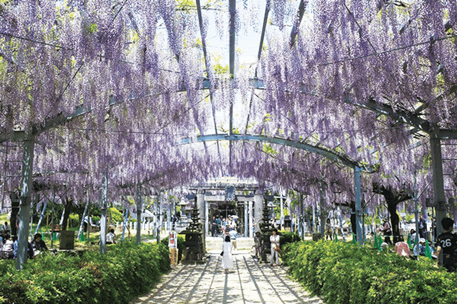 第 7 天 嬉野溫泉▶洋溢著異國風情的有田陶瓷公園▶國家天然紀念物~素盞鳴神社將軍藤祭▶熊本縣天然紀念物~日吉神社賞紫藤▶熊本AEON MALL ▶飯店 有田陶瓷公園素盞鳴將軍紫藤祭熊本日吉神社賞紫藤熊本日吉神社賞紫藤 【有田陶瓷公園】巴洛克式的巨大庭院中重現了18世紀德國的茨溫格爾宮殿,彷彿置身歐洲莊園古堡。宮中蒐藏世界知名的有田燒作品,從江戶時代到明治時期的作品中可清楚了解有田燒的歷史演變,另外1870年維也納世界博覽會中展出的180公分大花瓶,為宮中必看珍藏之一。有田燒工房中可體驗捏陶、彩繪的樂趣,即使是初學者都能創作出獨一無二的有田燒。餐廳、巴洛克庭園、酒窖、高爾夫球場等設施一應俱全,看點數不勝數。【素盞鳴神社將軍藤祭】傳說黑木大紫藤是在西元1395年,由後征西將軍良成親王親手所栽種的。樹齡超過600年的大紫藤即使經歷無數戰火的摧殘,仍強壯有力的生長著。如今以「長壽紫藤」之名為全日本所知。並且被指定為國家天然記念植物。栽種在素盞嗚神社内的黑木大紫藤,藤蘿棚架佔地約3,000平方公尺,每年4月中旬左右開花。開花時會有超過1公尺的紫色花萼垂下。花開時期神社內會擧行黑木大紫藤祭典,此時全日本會有大約20萬人前來感受紫藤之美。【熊本日吉神社賞紫藤】總本山在比叡山的玉名市山田日吉神社,供奉山神的大山咋神,也被稱為山王權現。神社境內樹齡超過200年的大紫藤,傳說是以學得聞名的赤松助次郎次男九右衛門,從坂下町(現:玉名郡南關町)的寺廟讓渡的供奉植栽幼苗。枝條延伸東西12m,南北10m以上。形成如大房間般,垂吊的紫藤花也有1m長,是熊本縣的天然紀念物。4月中旬至5月上旬是最佳觀賞季節。季節期間也有舉辦夜間點燈。【熊本AEON MALL】包含購物中心和超市,非常適合一家大小來逛~~