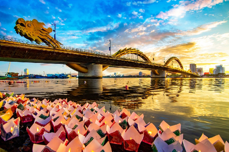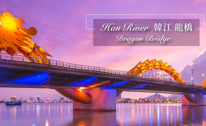 韓江為峴港主要河川,當夜幕降臨時橋梁燈光照映在水面上,凸顯出韓江夜景的旖旎風光。坐落於韓江之上的代表性地標【龍橋】是遊客拍照的著名景點!而韓江橋也是峴港的象徵,為越南第一座旋轉式橋樑。待天色漸暗,沿岸的燈光紛紛亮起,佇立河畔欣賞峴港的的夢幻夜色中,盡享悠然時光。