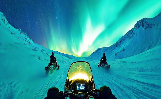 ❄ 雪地摩托車-馳騁極光下的速度與激情(可自行操控!)(途中將體驗極地BBQ+熱藍莓茶)