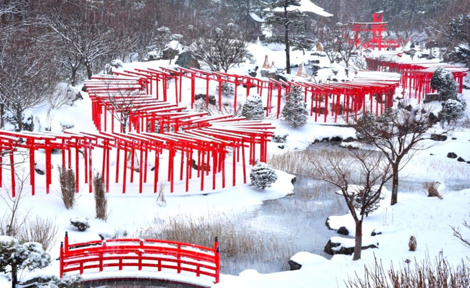 青森最美雪景 ▍高山稻荷神社近年來爆紅的青森秘境神社,紅色蜿蜒千本鳥居及龍神宮日式庭園雪景為冬季必遊景點。