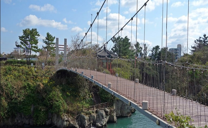 彷彿神話傳說中的一條巨龍,傳說中一條巨蛇盼望成龍,竟偷走了漢拏山神的珍珠,遭山神發現而變為石頭。▍龍淵吊橋
