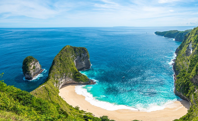 以清澈湛藍的海水和悠閒的氛圍聞名,是峇里島最受歡迎的離島之一。這裡是潛水與浮潛的熱門地點,可近距離欣賞珊瑚礁與熱帶魚群。島上氛圍比本島更恬靜。旅人可騎行探索漁村,或在沙灘上享受日光浴,體驗純粹的島嶼風情。