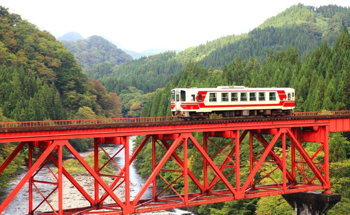 日本最有意境鐵道 ▍秋田內陸縱貫鐵道有著「秋田美人線」稱號的秋田內陸縱貫鐵道,極具味道的復古小火車,搭配窗外四季更迭的風情,堪稱是日本最具意境的鐵道之旅。