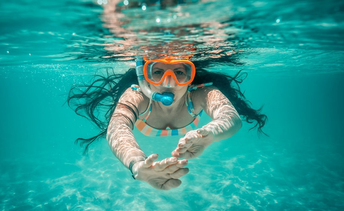 搭乘超大豪華遊船,享受豐富多元的體驗:浮潛探索海底世界,挑戰3.5米高空跳水以及高速滑道溜滑梯。