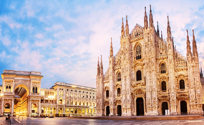 米蘭,一個時尚之都,每年都有許多的時尚展覽,美妝,服飾,流行飾品,包包等等,義大利人就是喜歡設計,擁有藝術的細胞,美學的 DNA 很強,米蘭更是帶動倫巴底大區經濟動脈的火車頭,米蘭大教堂可以說是米蘭的地標,它的建築風格包含了哥德式、新古典式和新哥德式,是義大利最大的教堂。