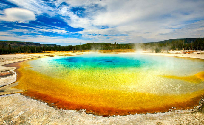 YELLOWSTONE WESTGATE HOTEL或BEST WESTERN DESERT INN或Kelly Inn或同級 第 4 天 西黃石-黃石國家公園(彩顏盆、大陵鏡七彩泉、參觀老忠實噴泉、西姆指)-大堤頓國家公園-愛達荷瀑布市 今日展開黃石國家公園探索之旅。黃石景觀以溫泉、地熱、間歇泉、泥漿盆聞名。除了老忠實外沿著木板步道還可看到10數個間歇噴泉。氤氳的水氣配上光影的照射,讓人分辨不出天上亦或人間。水是黃石景觀中重要的主角,在這裡你可以看到沸騰的湖,翠綠的、湛藍的、清澈的、滾著泥漿的…時而奔騰、時而淙淙,時而煙霧娉渺、時而迸怒沖天,水以她不同的風貌,演譯著黃石不同的精采。首先前往彩顏盆〜這是以這個地區的紅色、黃色和棕色泥巴命名的。不同的顏色來自泥漿中鐵的氧化態。與所有溫泉一樣,火山口中的熱量迫使加壓水透過地面上升,並在這裡排出。 此外,上升的氣體會導致起泡作用。泥漿中的氣泡作用隨著季節的變化而變化。在初夏,由於雨水和融雪,泥漿從高水位上變得水汪汪。到夏末,隨著地下水位的下降,泥漿會變厚得多。大棱鏡七彩泉是黃石公園內最大的泉池,直徑112.8米,深37米,色彩絢麗魔幻。隨後前往黃石國家公園景觀中最具代表的老忠實噴泉,自1870年被發現後,每天以無比的熱情忠實的上演,從不令遊客失望。 西拇指噴泉凹地,位於黃石湖西岸,因火山爆發於湖畔冷卻的火山熔岩包圍而成,宛如黃石湖的拇指而得名。West Thumb內有大大小小20多個pool和spring,包括彩色溫泉、間歇泉、泥泡泡泉等,特色就是噴泉景後方就是湖光山色,景色非常漂亮。一路逛到西姆指間歇泉盆地最重要的「深淵池 Abyss Pool」,這個16公尺深的溫泉在黃石公園中也算非常深,呈現出的顏色非常特別。之後南行進入大提頓國家公園,連綿的13座山峰如影隨形,與冰河穿鑿而成25公里長的傑克森湖纏綿成一幅幅詩一般的景緻; 大堤頓國家公園(GRAND TETON NATIONAL PARK),於1929年設立,此國家公園以翠綠的高山,清澈的湖泊著名,尤其林象豐美,花卉種類特別多,以藍色的勿忘我為其代表。珍妮湖於公園西南邊,群山投影在湖心,針葉林的翠綠,渲染在碧波間,偶有松鼠出沒的小徑,寧靜卻生氣盎然。今夜落腳在愛達荷小鎮。