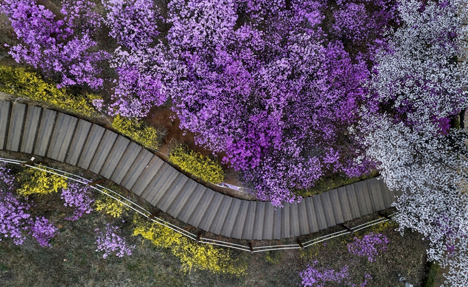 遠美山每年4月上旬至中旬正是杜鵑花花期。每到春天來臨,3萬餘棵杜鵑花樹將整座山染成了粉紫色,壯觀繽紛;杜鵑花節時,當地居民會在此進行各種表演活動,也會充滿著各式美食小吃攤。而在4月上旬時還會有一段時間是櫻花、杜鵑花、迎春花一起盛開,在視覺上達到最大的享受。