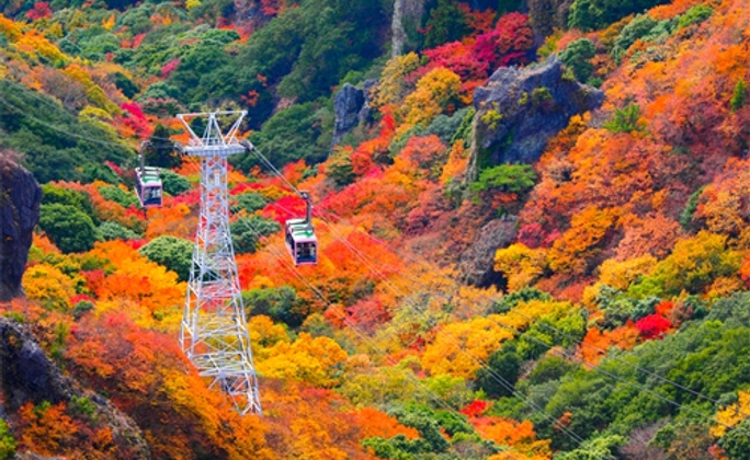 日本三大絕美溪谷之一的寒霞溪,是代表瀨戶內海國立公園的名勝地。在這裡可觀賞到春季的新綠、夏季的深綠、秋季的紅葉、冬季的雪景,四季變化的表情,還可遠眺瀨戶內海。而各式各樣的奇岩怪石也是必看的景點,這是1300萬年前火山活動而形成的岩塊,因長年累月的地殼變動及風化、侵蝕,形成地質學上別有趣味的絕景。