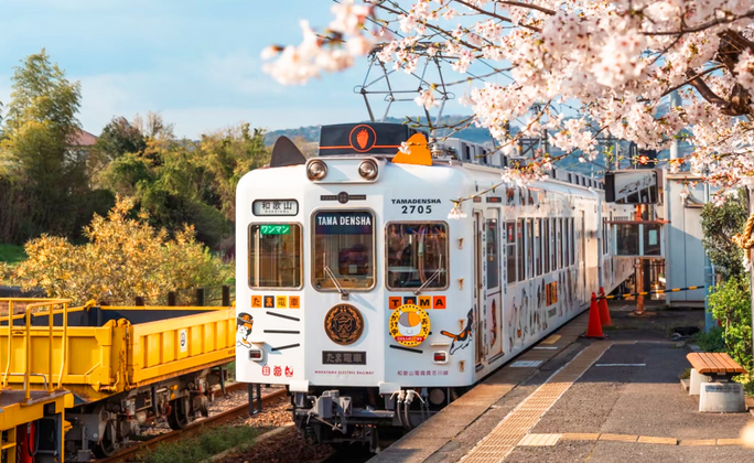 和歌山電鐵會社的貴志川線鐵道,從起點和歌山到終點貴志總長14.3km,以貓咪站長第一代「小玉」聞名,牠是全球首位貓站長,將面臨廢線的鐵路起死回生,吸引無數國內外遊客,後於2015年逝世,被尊為「永久名譽站長」;日前「二代玉」逝世後,由見習生「四代玉」、「五代玉」接棒輪流值班為大家服務。和歌山電鐵貴志川線的最大特色在於,擁有眾多獨特主題電車行駛。像是車身上彩繪101隻小玉站長身影的「小玉電車」,描繪出小玉站長栩栩如生的模樣、可愛又療癒。車廂內把手更設計成小玉站長身上的3種顏色,色彩相當繽紛;或白色『草莓列車』-每個車門邊都掛上兩顆垂涎欲滴的大草莓,彷彿連空氣中都帶著甜甜的香氛;或紅色『玩具列車』-車內展示著超過七十個櫥窗各式玩具,讓這條路線成為貓奴必訪的療癒鐵道!