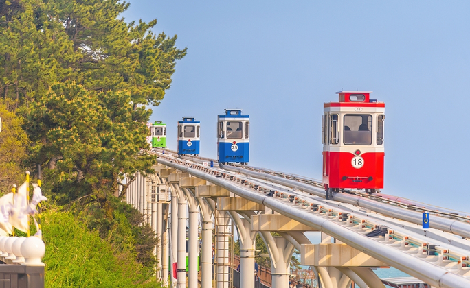 海雲臺BluelinePark是位於海雲臺尾浦-青沙浦-松亭區段長達4.8公里的舊鐵道所改建而成,是釜山海雲臺觀光特區的核心觀光設施之一。沿著海岸線一路延伸的鐵軌,可以搭乘海岸列車或天空艙欣賞美麗的海景。搭乘海岸列車除了能將東釜山的海景盡收眼底,也可以來往尾浦-青沙浦-松亭等景點。另外,天空艙則是於7~10公尺寬的空中軌道運行的單軌車廂,車廂往返行駛於尾浦-青沙浦之間的2公里區段,一輛車廂最多可乘載4名成人。